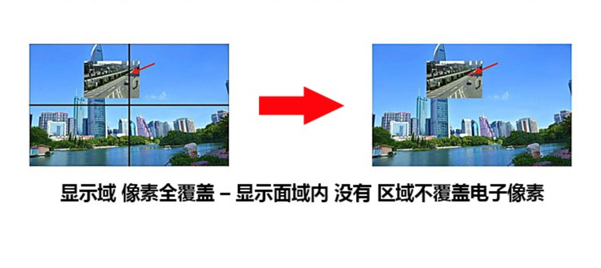 4、液晶拼接大屏幕显示区域像素全覆盖—显示区域内没有不覆盖电子显示像素